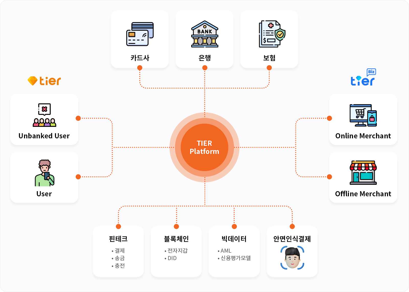TIER en-Cash를 통해 금융접근성을 개선하고 경제발전에 도모하기 위한 목표를 가지고 있는 핀테크 통합 솔루션입니다